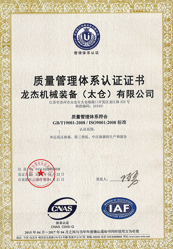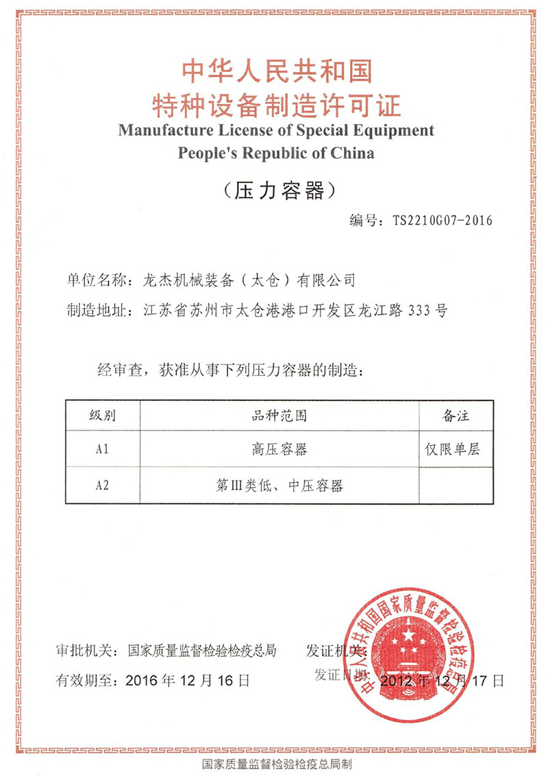 上海龍杰機械裝備有限公司是國家認證頒發的一、二、三類(A1、A2)高壓非標容器和美國ASME設計、制造企業,也是中石油、中石化定點的石油、化工裝備的制造基地。
