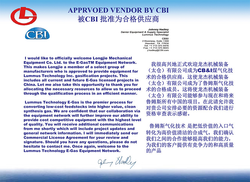 公司具有中國高、中低壓壓力容器生產許可證(A1級, 包含設計、制造),ASME U、U2鋼印證書,PED G模式生產資格,是中石化、中石油、中海油、中化集團、國家能源集團等大型知名企業的合格供應商。